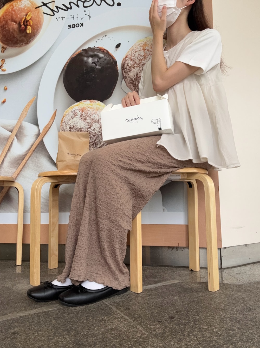 𝗮𝗼𝗶 のきまぐれ投稿 𖧧 ͗ ͗ プチプラで緩めな淡色コーデ ベストはchocoさん×しまむらコラボなの໒꒱ིྀ༝⁺ ここのドーナツとってもクリームたっぷりでおいしかった Instagram ☞ @mrma_mrma_mrma おはようございます 今日も見てくださりありがとうございます いいね、お気に入り嬉しいです