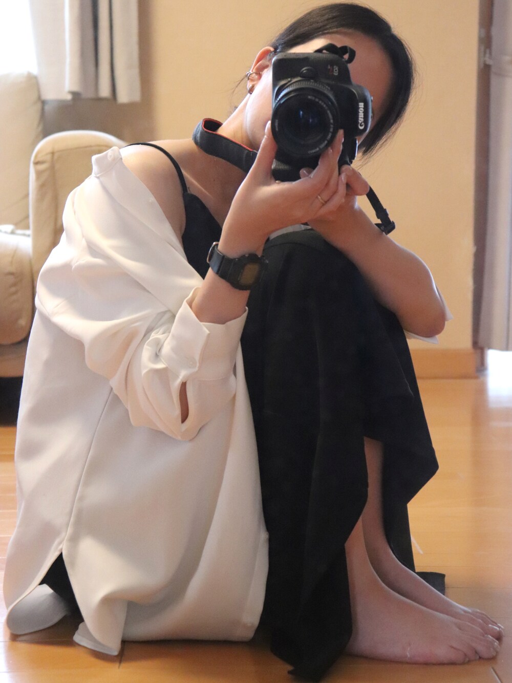 自撮り難しくていつもこの画角😇 ワンピースの可愛さ全然伝わらない😇