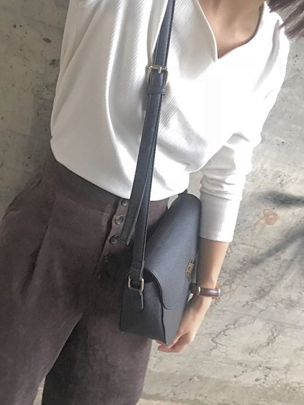 初投稿どきどきです🍂 トップスはハートネックで女性らしく☺️ ボトムスは後ろでキュッとなっていてとても可愛いです🌟 シューズやバックは黒でまとめました◎