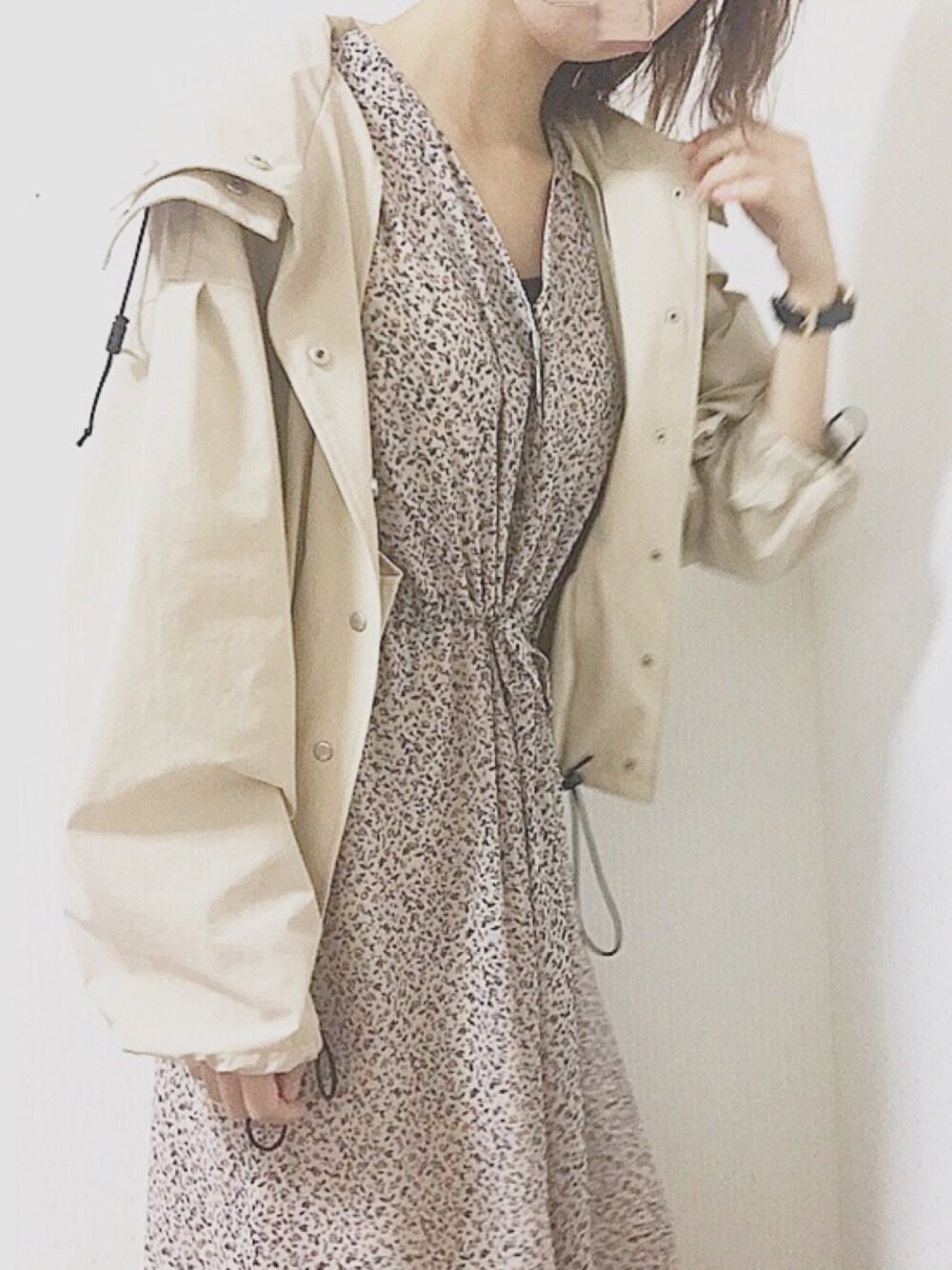 みるものワンピース「花柄シフォンワンピ―ス」を使ったコーディネート