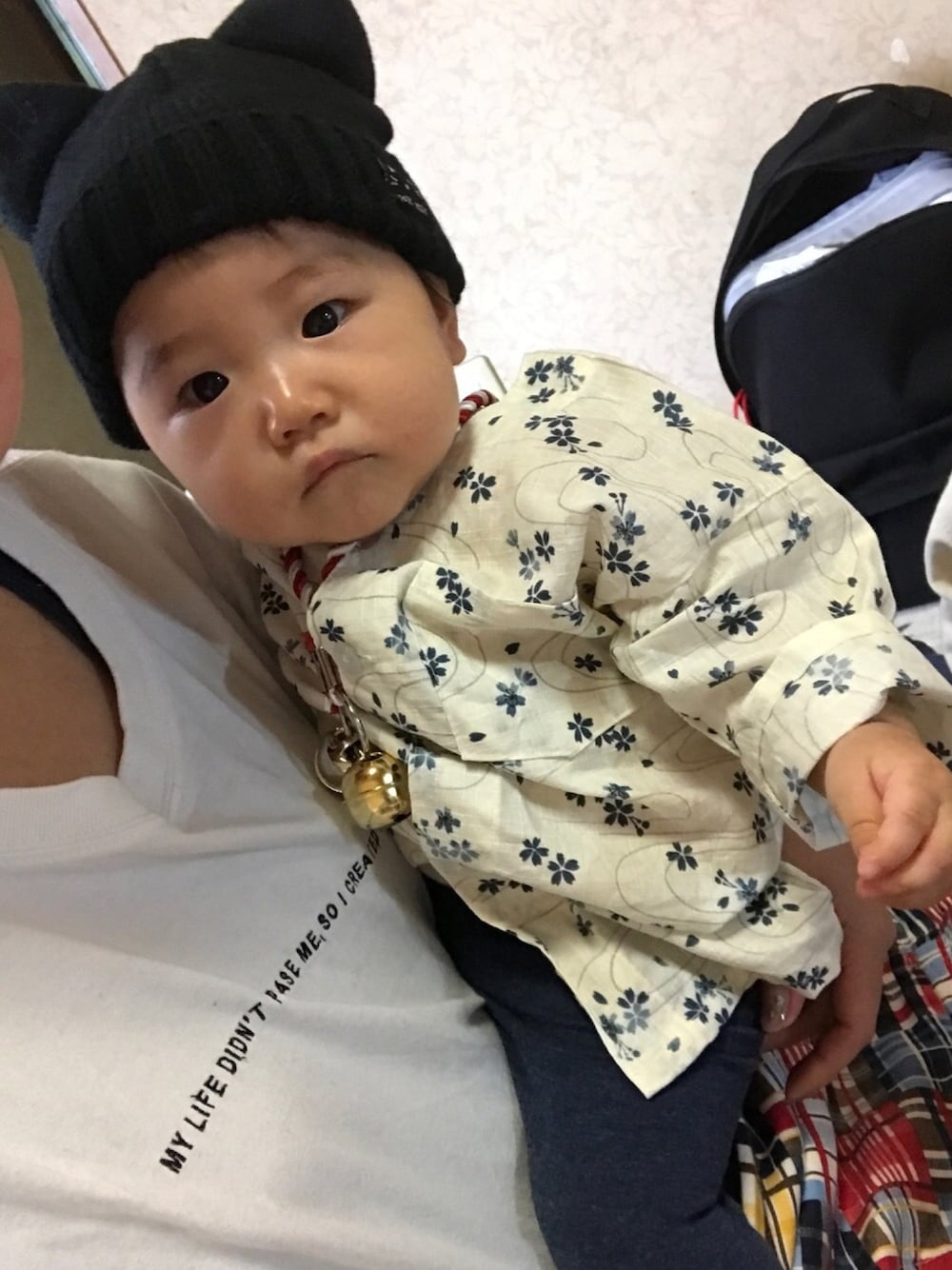 娘っちお祭りコーデ♡ 90サイズの肉襦袢着せて 下はGAPのネイビーレギンス! 来年はじいじが👴藍染の全身 買ってくれるみたいだから楽しみに😍 (じいじまだ42歳ww) 来年のお祭りも楽しみだー❤️