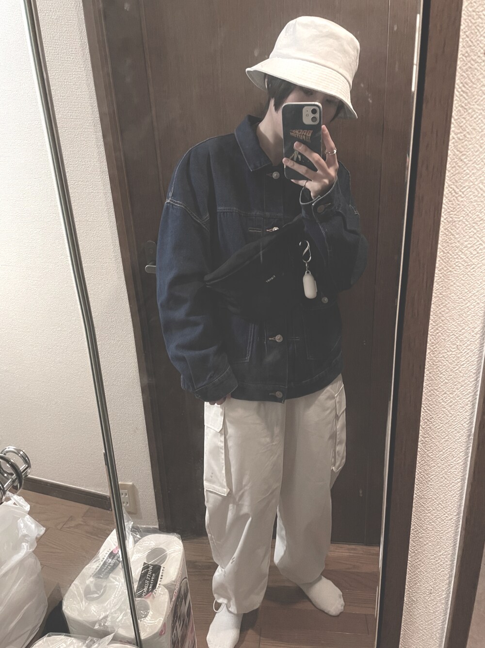 ▽△のデニムジャケット「WEB限定 スーパービッグシルエット デニムジャケット/オーバーサイズ」を使ったコーディネート