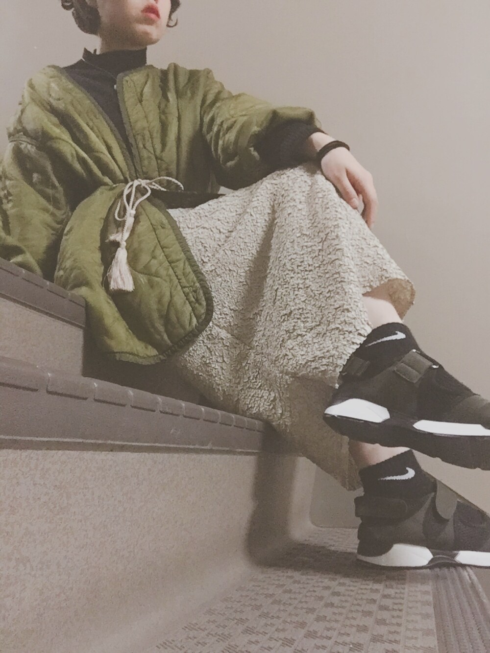 17 / 3 / 23 人生初 の 宮島 へ 行ってきました。 朱色 の 鳥居 に 合うように カーキ と ベージュ で。 ポカポカ いい天気 でした ◎