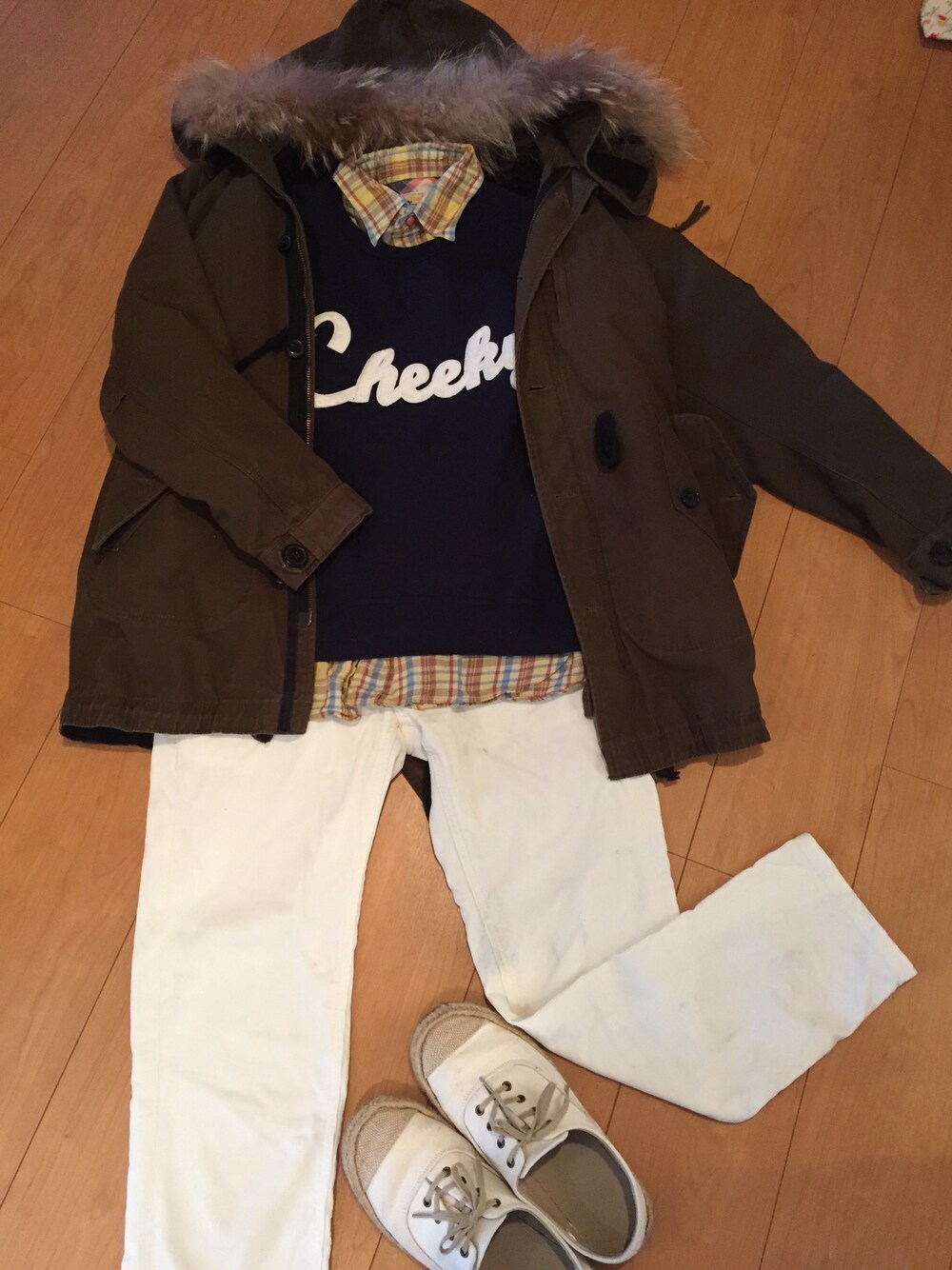 車の車検待ち〜 モッズコートはどこかのメンズブランドのもの 裏地が取り外しできて便利(^^) 今日は外してくればよかった〜笑