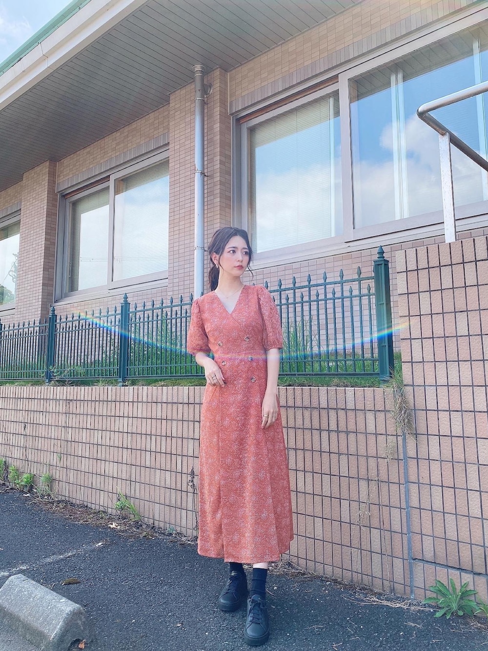mrkのワンピース「ハーフスリーブランダムドットワンピース」を使ったコーディネート