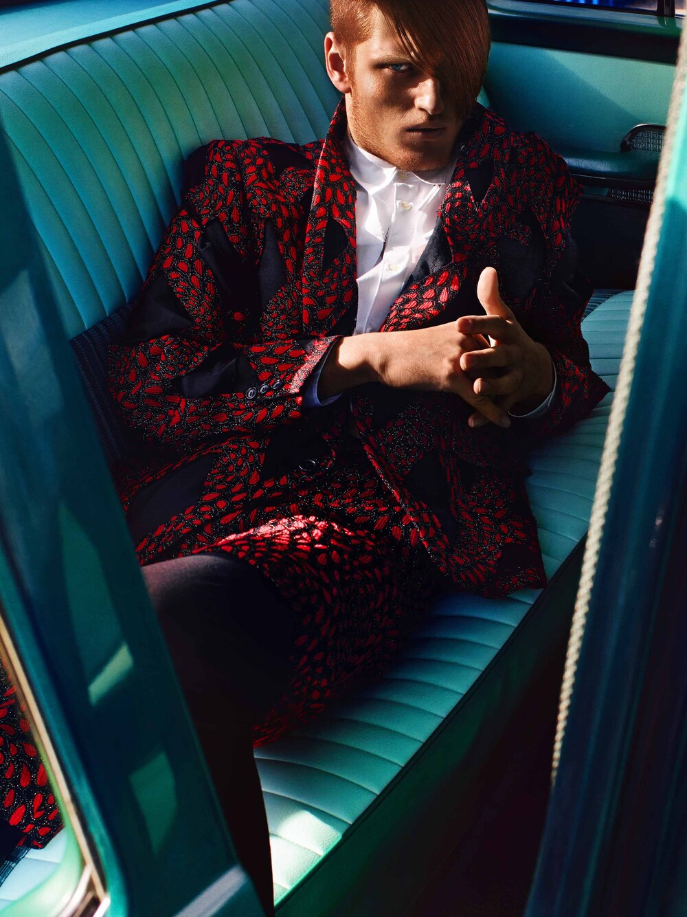 COMMES DES GARCONS 白色恤衫、紅色圖案西裝及短褲 GIVENCHY by Riccardo Tisci 黑色長褲