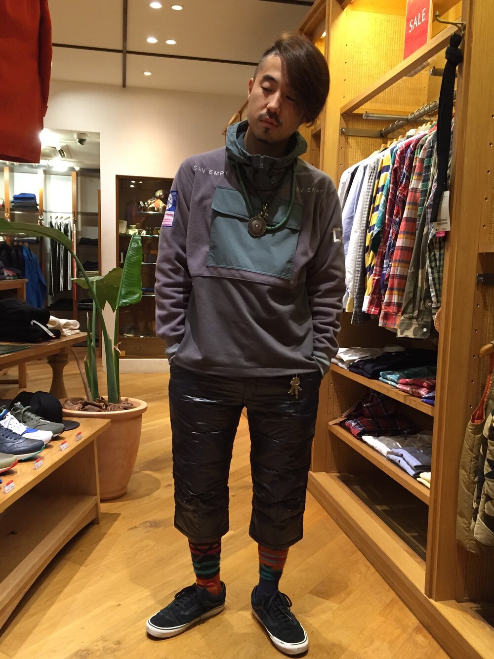最近お気に入りのC.Eのパーカーです。 寒かったのでダウンパンツと合わせアウトドアミックスのストリートスタイルにしてみました。