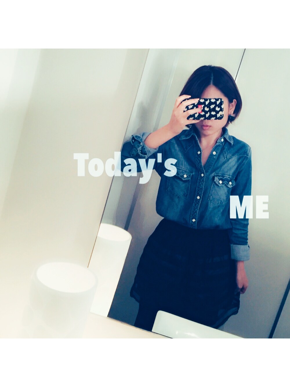 Today's work style 👕👕 見えにくいけど黒のふんわりスカート💕 懐かしい服引っ張り出してきたコーデ☝︎ My lips not color😂😂