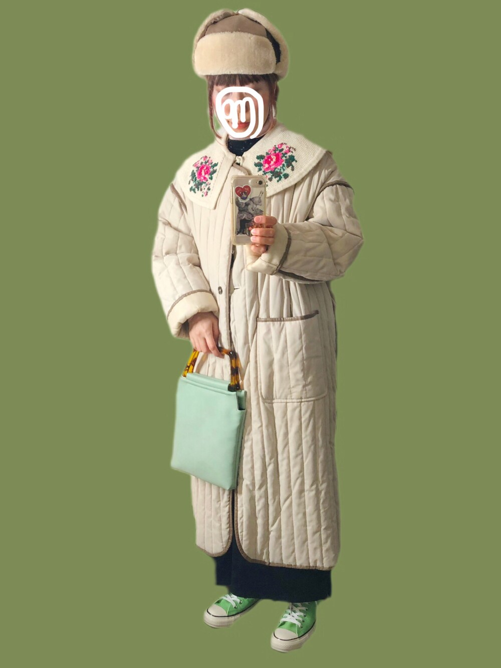 前回の投稿にいいね&セーブありがとうございました😊✨ 素敵なフォルダーインもとっても嬉しかったです✨ キルティングコートにつけ襟を合わせたコーデ🌸 この色合わせお気に入り👼✨