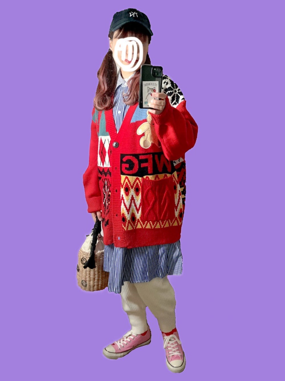 前回までの投稿にいいねとお気に入り登録して下さった方々、ありがとうございます☺️✨ ビームスボーイのチェックのキャップに赤いカーディガンを合わせたくて、コーデを組んでるうちにストライプのワンピを合わせたらプレッピー風のリラックスコーデになりました🥰