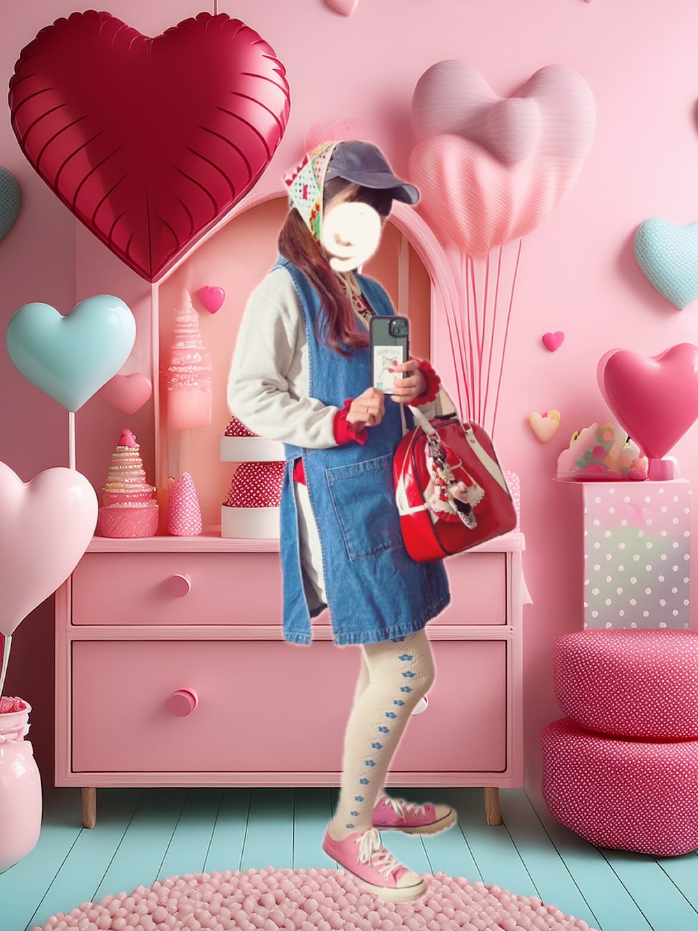 前回までの投稿にいいねとお気に入り登録して下さった方、ありがとうございます😊✨ お気に入りのいちごベイビーニットに合わせてバレンタインを意識したコーデにしてみました🍓💕 最近ハマってるキャップにバブーシュカですが、カオリノモリのバックリボン🧢に合わせたら全方位すっごく可愛かったので別の色も欲しくなっちゃいました🥰