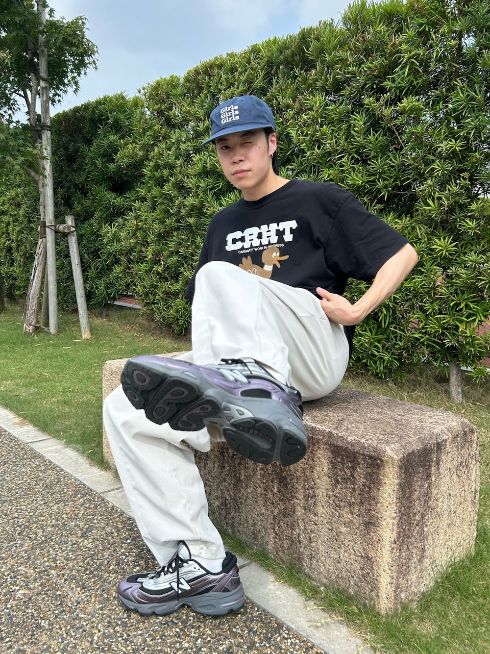 Instagram→@masalaugh74 モノトーンでシンプルにコーディネート! キャップでストリート感をプラスしました!
