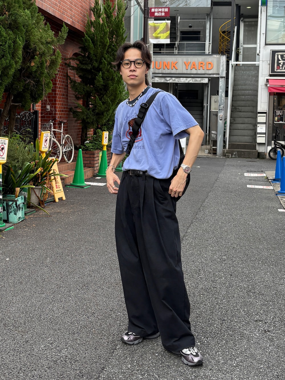 Instagram→@masalaugh74 ワイドパンツにインして眼鏡と合わせたカジュアルコーデです!