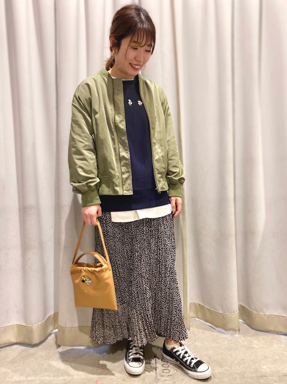 ✎𓂃トップス・アウター 着用サイズ:Fサイズ 普段着用サイズ:Mサイズ 【着用感】 アメホリとディズニーのコラボ商品です! スウェットは程よいゆるさでロゴのミッキーがレトロな感じで可愛いです🌿 アウターはバックにミッキーがプリントされていてとてもインパクトのあるアイテムです! ディズニーに着て行っても可愛いですよ🥰♡ ✎𓂃スカート 着用サイズ:Mサイズ 普段着用サイズ:Mサイズ 【着用感】 柔らかいプリーツ素材なので広がりすぎず着ていただけます🍃 ウエストに紐があるのでM、Lお好きな丈を選んで着てみてください🍊