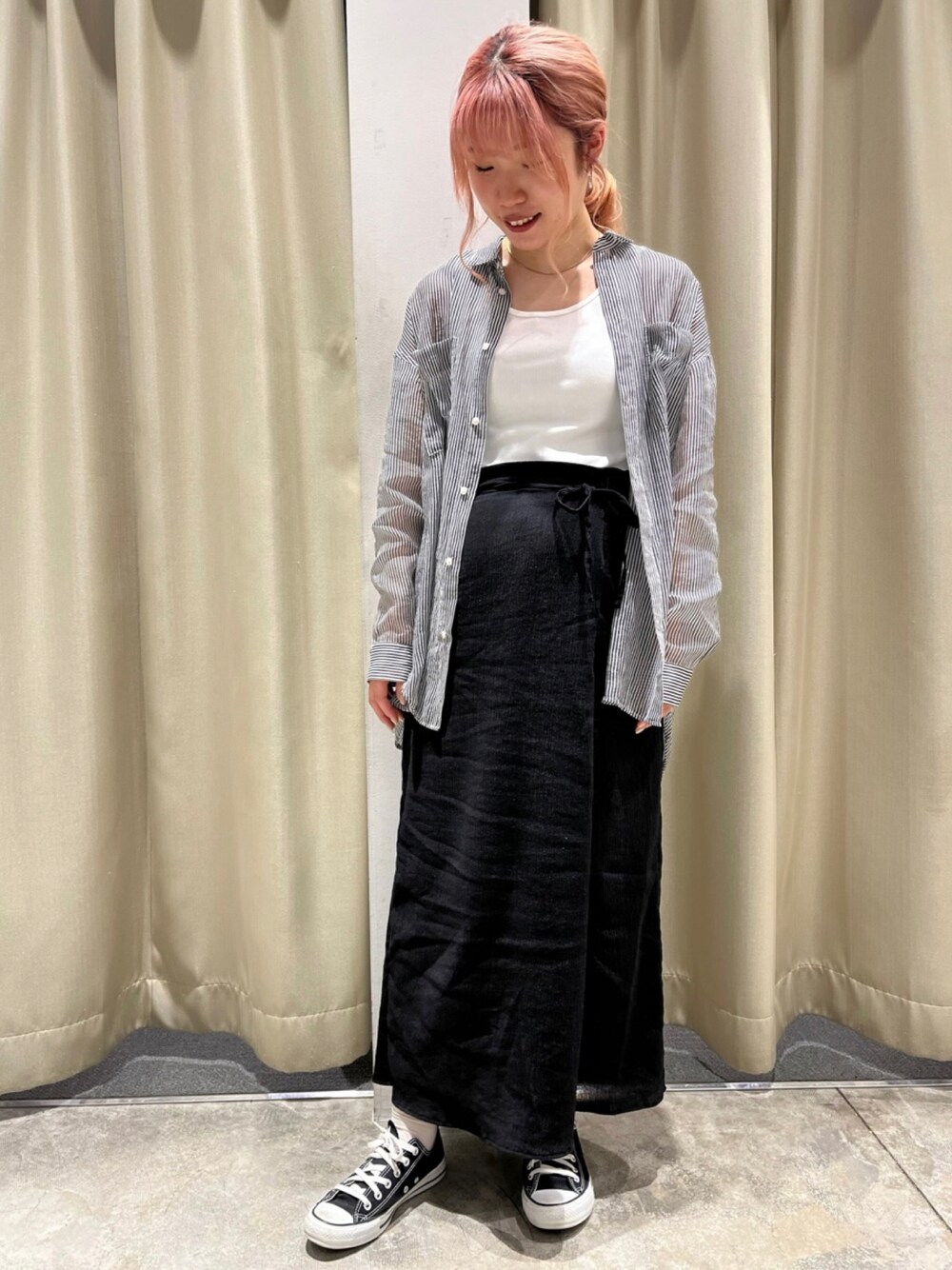 mari(Green Parks)のスカート「ラップ楊柳細見えスカート」を使ったコーディネート
