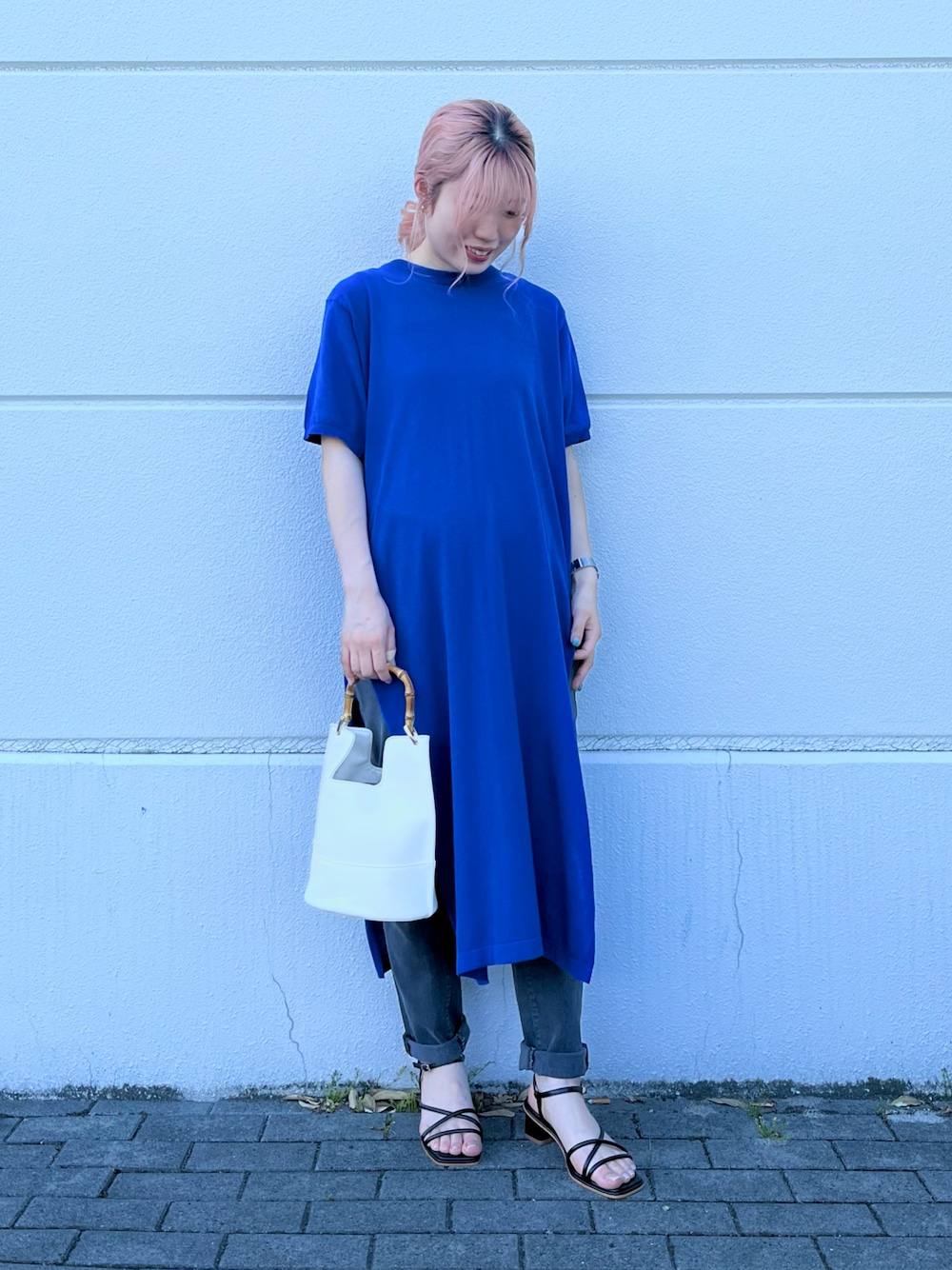 ✎𓂃ワンピース 着用サイズ:Mサイズ 普段着用サイズ:Lサイズ 【着用感】 綿素材のニットなので夏でも涼しく着ていただけます🐏 サイドのスリットが深めなのでパンツだけでなくスカートと合わせてもスッキリ着ていただけますよ😊✨ ✎𓂃パンツ 着用サイズ:Mサイズ 普段着用サイズ:Lサイズ 【着用感】 シガレットデニムはスキニーよりも股下がゆったりしているので履き心地が良いです◎ グレーのお色味は綺麗めからカジュアルまで幅広く着回せます✊