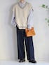 Mr.SZKのベスト「羽根つきベスト / オーバーサイズニットベスト」を使ったコーディネート