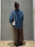 上品カジュアルコーデ◎ 155cm/M〜L体型/骨格ナチュラル/ブルベ冬 ケミカルブルーのデニムシャツを主役にした、カジュアルスタイル◎ オーバーサイズで、体のラインを拾わずリラックスした雰囲気に^ ^ デニムシャツサイズFREE ボトムはブラウン系のワイドパンツで、柔らかく女性らしい印象をプラス◎ デニム×ブラウンの系配色で、カジュアルなのに落ち着いた大人配色に仕上げています^ ^ ショルダーバッグはコンパクトにして、全体のボリュームバランスを調整◎ 足元はブラックで締めて、コーデにメリハリをつけています^ ^ ラフなのにきれいに見える、大人の日常にちょうどいいデニムコーデです◎