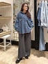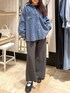 上品カジュアルコーデ◎ 155cm/M〜L体型/骨格ナチュラル/ブルベ冬 ヴィンテージ感のあるデニムシャツで、ほどよく力の抜けた大人カジュアルに◎ ゆったりしたサイズ感が、体のラインを拾わずリラックスした印象をつくってくれます^ ^ ボトムはチャコールグレーのワイドパンツで、甘さを抑えたクール寄りのバランスに◎ デニム×グレーの組み合わせは、カジュアルなのに都会的に見えるのが魅力です^ ^ シャツの丈感で縦ラインが生まれて、自然とスタイルアップ効果も◎ 足元は黒で締めて、大人の落ち着きをキープしています^ ^ ラフなのにだらしなく見えない、“余裕のある日常服”という感じのスタイリングです◎