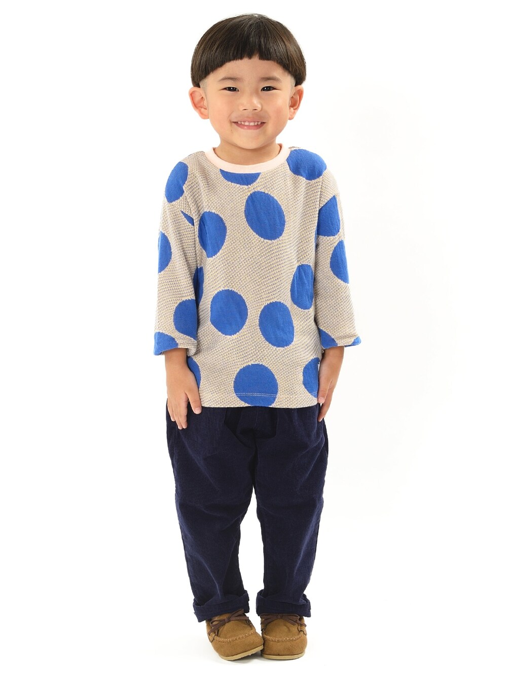 【 日本製ドット柄ジャガードTシャツ 】 大き目ドット柄のジャガード織素材のTシャツ⭐︎ 普通の天竺のTシャツより厚手の素材です。 ペア、リンクコーデ、親子でもお揃い、おそろいコーディネートも出来ます👫 安心の日本製でギフトやプレゼントにもオススメ🎁✨