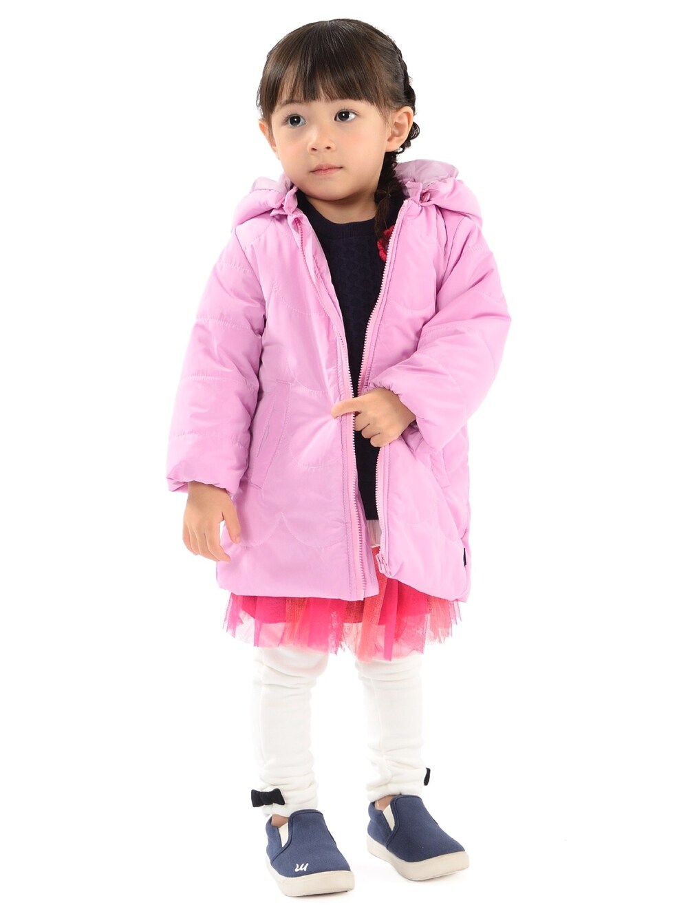 【 かぎ針編みお花モチーフ付ケーブルキルトトレーナー 】 かぎ針編みのお花のモチーフがポイント🌼 【 チュール切替スカート 】 毎シーズン人気のチュールスカート❣️ 女の子が大好きなお姫様、プリンセスみたいなふわふわチュールが可愛い👸🏼 普段使いはもちろん、クリスマスやお誕生日パーティーなどお呼ばれやお出かけにもオススメ🎄⭐︎ 【 裏シャギー爆温裏起毛裾くしゅリボン付レギンス 】 裏起毛素材よりも裏の毛足が長いのが特徴です☝🏼 あったかく、柔らか素材、そして肌触りも良いのがポイント♩ 裾はくしゅくしゅデザイン、リボンのモチーフ付きも女の子らしくて可愛い💕 【 とんがりフード付タフタスカラップキルトジャケット 】 頭のてっぺんにぼん天が付いた小人帽のようなとんがりフードが可愛いジャケット✨