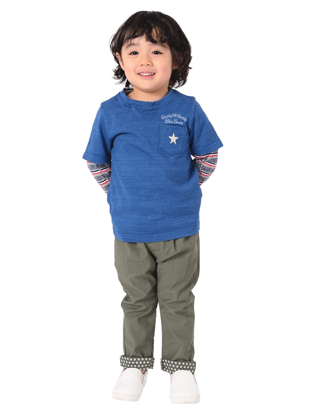【 ムラ糸バックサテンSTパンツ 】 裏朱子織で光沢感があり、なめらかなふくらみもあるバックサテン素材🧵 裾を折り返すと星柄がプリントされているので、裾を折り返してカジュアルに着たり、伸ばしたままで無地パンツとして着れば、ちょっとキレイ目スタイルにも使えます🤩⭐︎