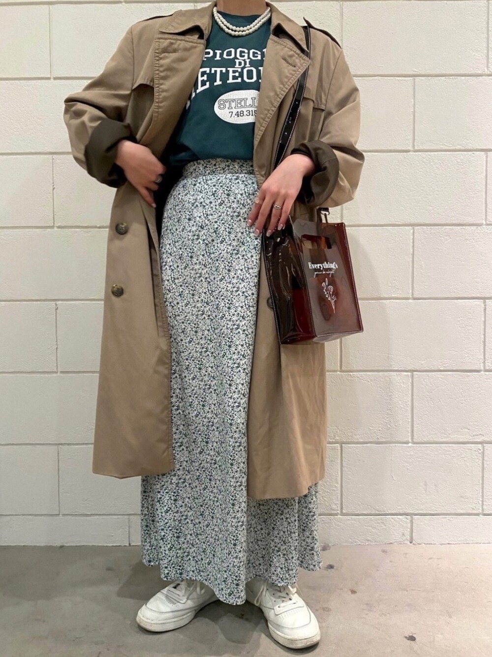 ☻いつもご覧いただきありがとうございます☻ 最近のとっても暖かかった日に Tシャツを着てみました〜!☀️ トレンチコートを羽織れば気の時期でも Tシャツ着れちゃいますね😋 カレッジのロゴが古着っぽくて可愛いです🌿