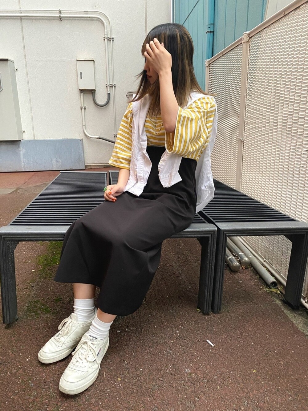 Thina ☻のTシャツ/カットソー「【ゆったりシルエット】10色展開 ボーダーリンガーTシャツ」を使ったコーディネート