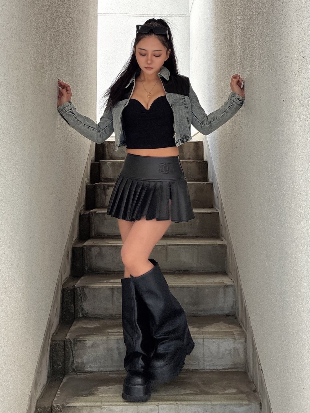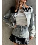 haruka(GYDA)のデニムジャケット「【WEB限定】【TINY低身長さん向け】フェイクレザードッキングデニムZIPショートジャケット」を使ったコーディネート