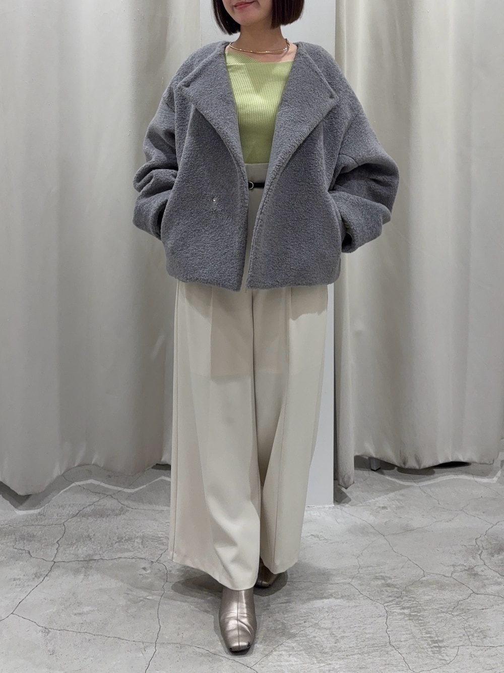 【blouson】リアルバイしてるお気に入りのボアブルゾン。フェミニンな可愛さよりトレンドっぽいカジュアルな雰囲気がお好きな方におすすめです。158cmで腰がカバーされるくらいなのと、アームホールが太めの作りで下に着込む事ができるので、今の時期でも暖かく着ていただけます。 【pants】こちらもリアルバイしたパンツで、158cmでSサイズですがスニーカー履いて大丈夫でした。寒い時期は厚手のタイツを下に履いててもシルエットが崩れないくらいの太さなので寒い日も重宝してます🙏🏻