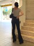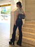 【トップス】キャミソールとセットになったトップス♡ハイウエストのボトム合わせて中のインナー少しお腹見えるかなぁくらいの着丈です◎ シルエットはタイトですが、生地柔らかく着やすさ💯 【デニム】ストレッチ効いてるから履きやすさ◎ ブラックはブルーよりも生地固めだから普段履くサイズよりワンサイズあげても🙆🏻♀️ 【サンダル】約15cmヒールですが傾斜もほぼなく、程よい重さで安定感抜群⤴♡ 23-23.5cmでMサイズ着用🩰 【バック】素材柔らかめで大容量です♡