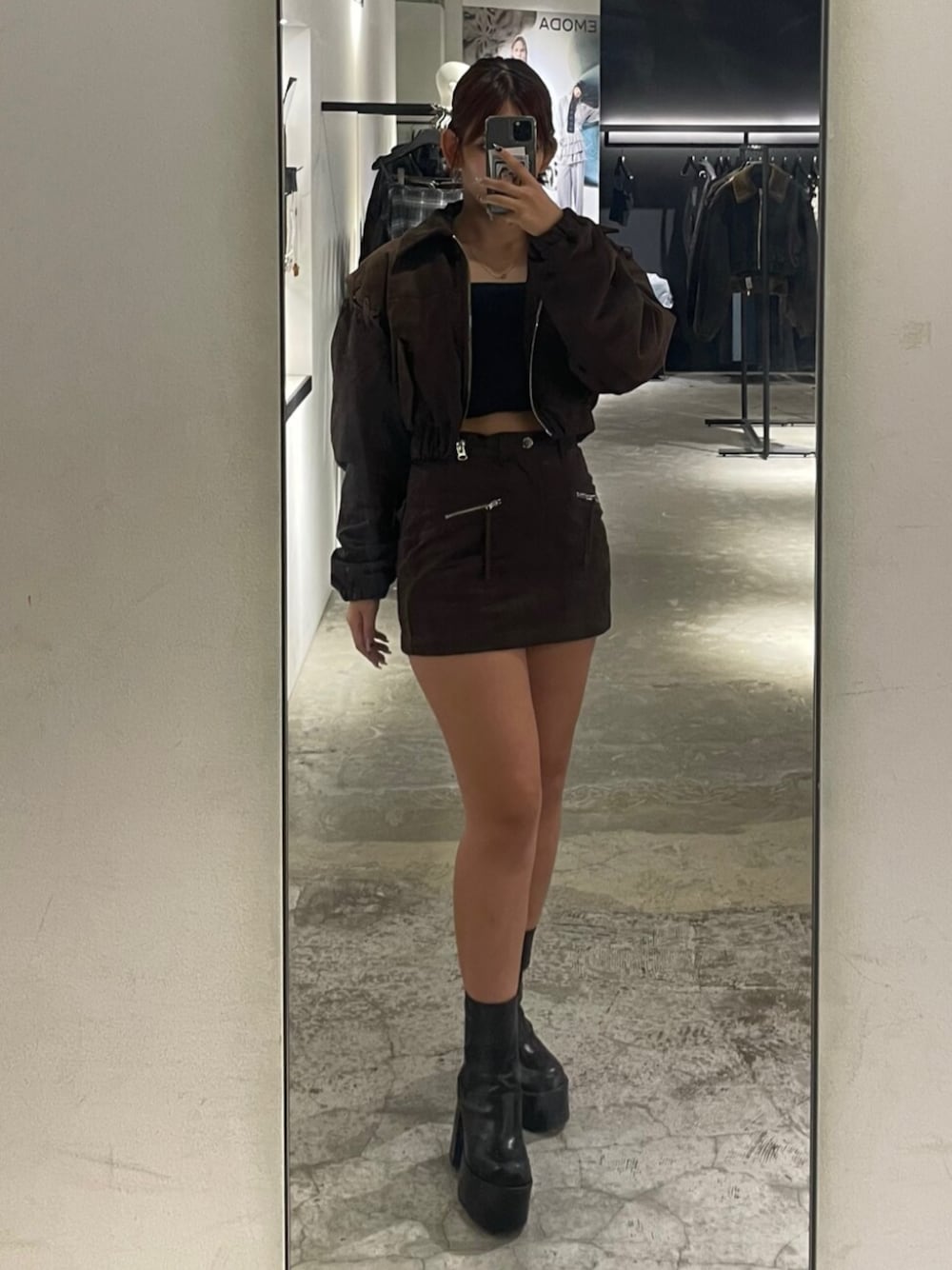 【ブルゾン】袖周りゆとりあるので中着込んでも◎ウエスト細見え強調してくれるシルエットです🤎 【スカート】インナーパンツ付で、ウェーブだと腰の分あがってかなり短いので、Mサイズでも◎ 【キャミソール】インナーカップ付で取り外しも出来ないのでズレる心配0️⃣⤴︎ 【ブーツ】12cmヒールでも傾斜ほぼなく、楽さ💯23-23.5cmでMサイズ着用してます👢