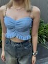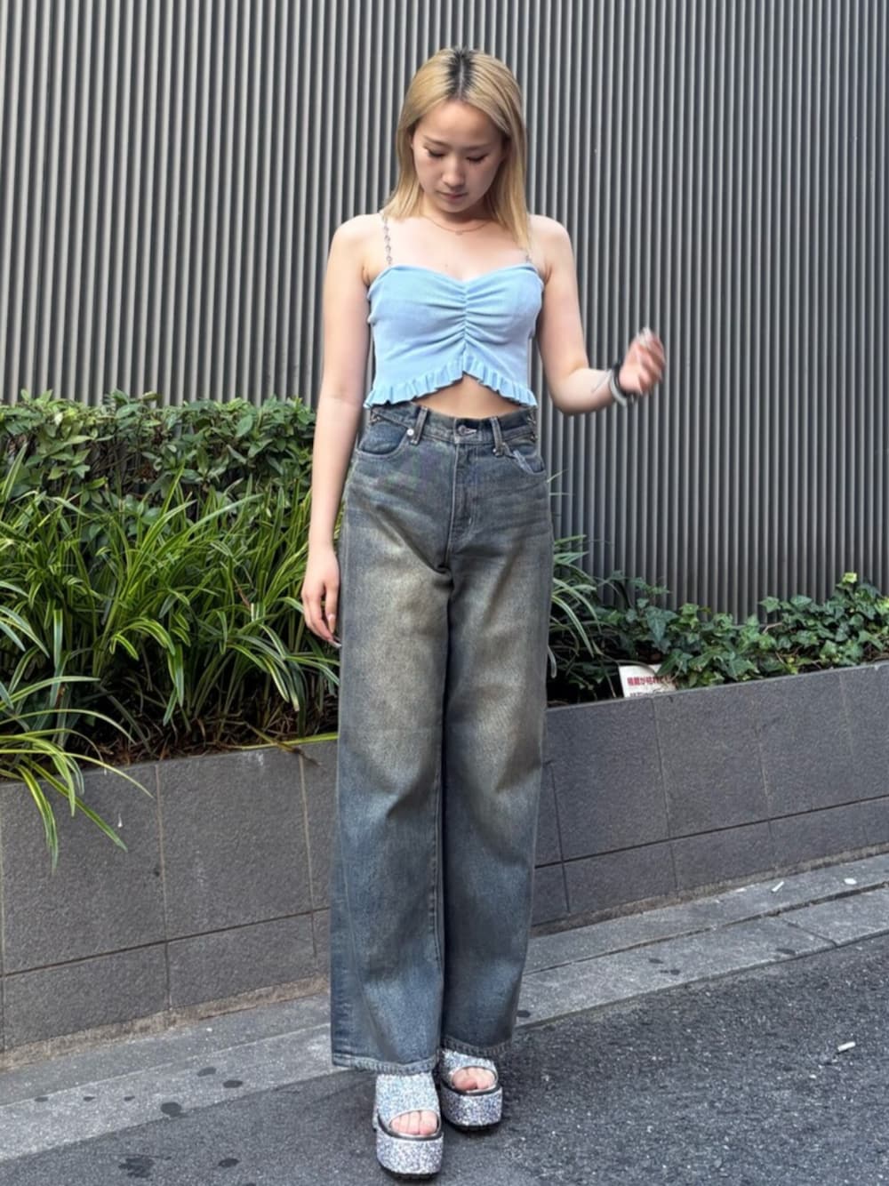 トップス→紐のところがキラキラになってて夏っぽく着ることできます!! デニム→後ろのデザインが珍しくevrisにしかないデザインです!!❤️ シューズ→23センチでMサイズ履いてます!