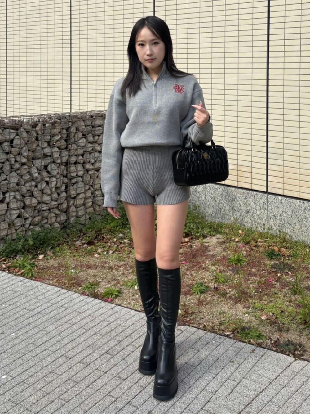 高松千彩(EVRIS)のブーツ「ロングチャンキーヒールブーツ」を使ったコーディネート