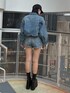 高松千彩(EVRIS)のデニムジャケット「ヴィンテージライクカラーデニムブルゾン【セットアップ着用可能】」を使ったコーディネート