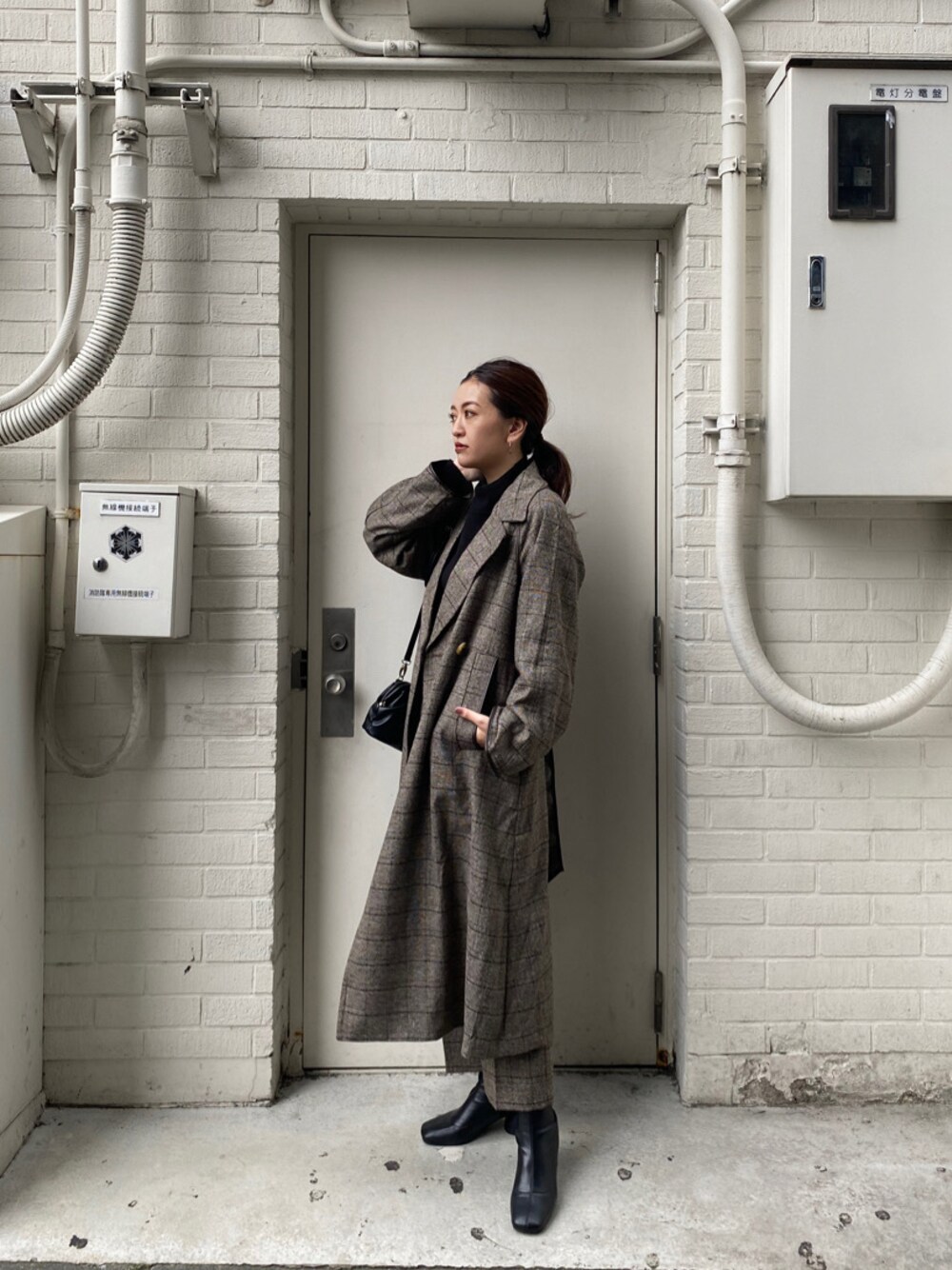 秋〜冬にかけて着ていただけるオーバーシルエットのコートです✨同素材のパンツとセットアップで着てみました。コートは、レザーのパイピングが今年らしく、グレンチェックなので派手になりすぎないのもオススメです!インナーは黒で合わせてますが、ボルドーやオレンジなどの秋色合わせでも可愛いですよ♡