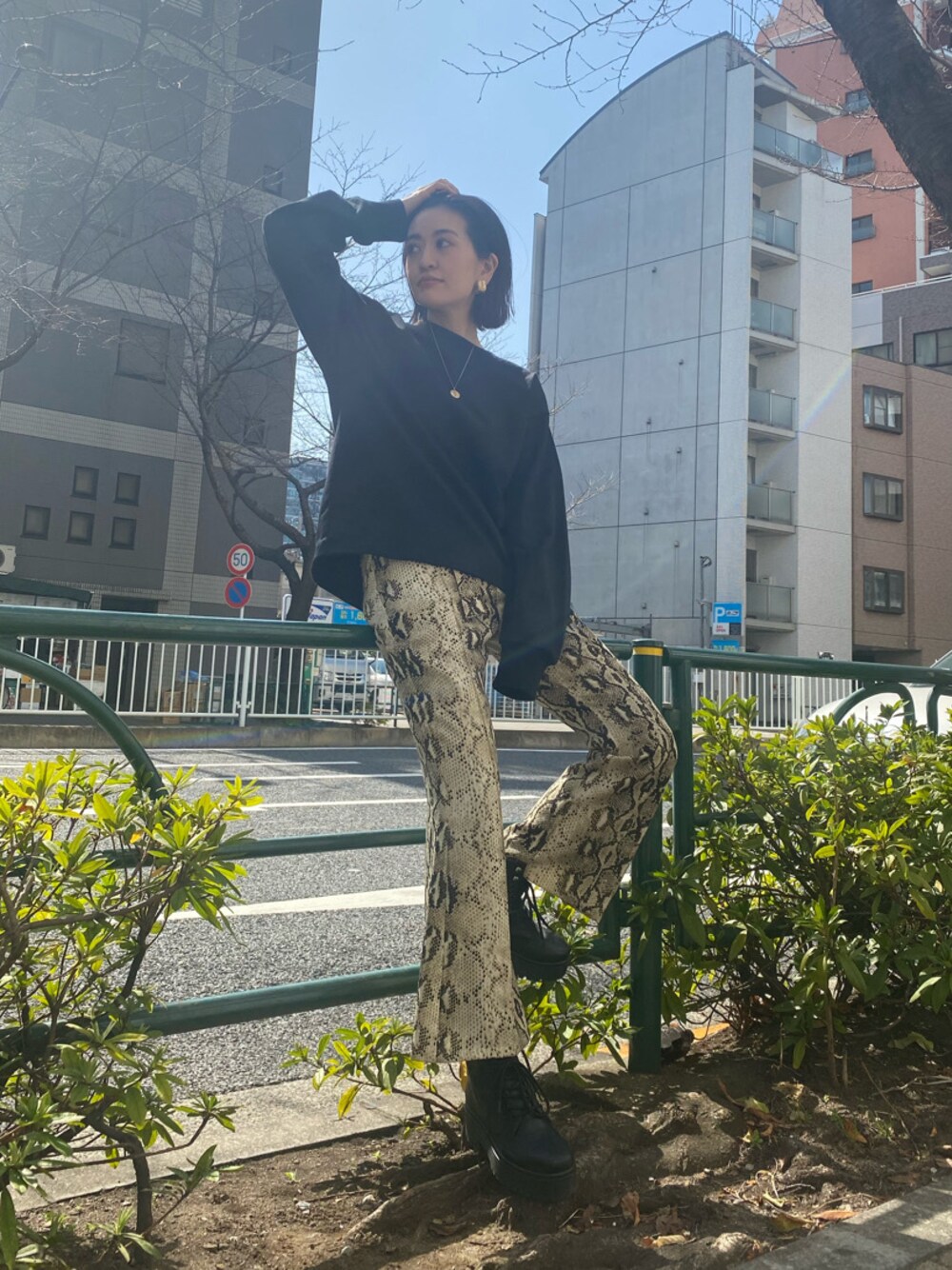 MURUAからベーシックなロンTの登場です♡こちらのトップスは、程よい厚みがあり、肌触りの良い綿100%を使用している為着心地抜群です。袖があえて長めの丈になっているのと、ゆったりなサイズ感が特徴なので、おうち時間の増えた今年は部屋着としてもストレスフリーで着ていただけます。合わせているパンツは薄手でサラリとした肌触りの為夏まで着回せるのが特徴です。フロント部分にはセンタープレスが施されている為前から見た時に脚が長く真っ直ぐに見える効果もございます。カジュアル派の方は、このようにワークブーツではずしたコーディネートがオシャレさもプラスしてくれるのでオススメです♡