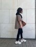 ゆるっと感が可愛いオーバーサイズのTシャツを使った私服コーデ♡少しだけ前後差があるこちらのTシャツは、162センチの私が着てもすっぽりとお尻が隠れるので、ボトムはスキニーでスッキリと合わせるのがバランス◎です!身体のラインを拾わないゆったりサイズなのでストレスフリーで着ていただけて、袖も肘くらいまである長めの丈の為、夏でも腕を出したくない方にもおすすめです♪Tシャツでは珍しいこのモカの色味がお気に入りポイントなのでバッグもブラウンで合わせてみました。 肩にかけているのは、ショートニット×タンクセットのニットだけを使っております。垂らしたままでも、前でクロスに結んでもオシャレですよ♡