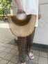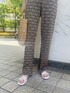 柄のパンツを主役にした、夏に着たい爽やかコーディネートのご紹介です。レトロなオリジナルの小紋柄のパンツは周りとも被らないオシャレアイテム。素材はレーヨン100%なので滑らかな肌触りと上品な光沢感がポイントです。又、通気性に優れているので夏でも風通しが良く涼しげに履いていただけます。ウエストは全周ゴム仕様なのでストレスフリーでおうちコーデでも履けちゃいます!少し丈は長めなので低身長の方はウエストを1回折り返してもいいかと思います♪ 太もものシルエットをあまり出したくなかったので、トップスとしても使えるフレンチスリーブのミニワンピースと合わせてみました。もちろん1枚でワンピースとしても着れるアイテムなので、着回し力抜群です◎二の腕をカバーしてくれるフレンチスリーブの形が私の推しポイントです♡ フラットサンダルとカゴバッグを合わせ、夏のイメージにしてみました!