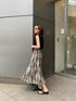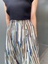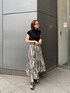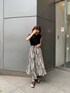 ランダムな配色のストライプが目を惹くフレアスカートを主役にしたコーディネート♡裾がイレヘムになっており、歩く度に動きが出るフレア感もポイント。夏に履ける素材のスカートですが、ニットやブーツを合わせれば秋口まで長く着回しのできる優秀アイテム◎ 私はシンプルに無地のブラックのショートニットも合わせました!実はこのトップスは、花柄のキャミとレイヤーもされており別々でも着れるアイテムです。今回はキャミソールなしでレイヤードされているニットのみを使ってみました!女性らしくなりすぎないように、足元はヒールではなくあえてフラットサンダルで合わせ少しカジュアルな印象にしてみました◎普段フレアスカートはあまり履かない、、という方にも、モードにオシャレに履けるストライプ柄だと思うのでオススメです♡
