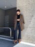 9月に入り急に気温が下がって羽織りものに困っている方におすすめのジャケットコーデ♡私が今リアルに店頭で着ているアイテムです!ジャケットは絶妙なモカカラーの色味が秋らしくおしゃれ感を出してくれるのと、トレンド関係なく長く着れると思ったのでリアル買いしました♡サイドの深めに入ったスリットが重さを軽減してくれて、後ろが少し長めになっている為スタイルカバーもしてくれます!腕を通さずに肩掛けするスタイルもオススメ◎ かっちりしすぎないようにボトムはデニム合わせ。こちらのデニムは裾のサイドにスリットが少し入っていることで、足が綺麗に見えるフレアがかっているシルエットです◎ブラックデニムですが、ヴィンテージ加工がしてある為、履くだけでこなれ感が出ちゃいます♪丈も長すぎない為スニーカーやぺたんこ合わせもおすすめです!私は162センチでSサイズを着用し、少しくるぶしが出る長さです。