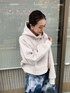 MURUAらしいオリジナルのペイント柄が目を惹くスカートを主役に、少しカジュアルダウンしたコーディネート♡独特な柄ですが派手になりすぎないよう、合わせるトップスはパーカーにし、ヒールではなく黒のショートブーツにしたことで全体のバランスを調節しました♪そこまでフレア感は強くないので、フレアスカートが苦手な方にもオススメです。合わせているパーカーは去年も大人気だったボンディング素材のショートパーカー。パーカーはデニムが好きな方やカジュアルな印象が強くなりがちですが、MURUAのこのパーカーはもちもちとした素材でロゴなども書いていないため、幅広いコーディネートに合わせやすい万能アイテムです◎一枚持っているとボトムを選ばずに着れちゃうので、秋から冬にかけての時期にとてもオススメです!