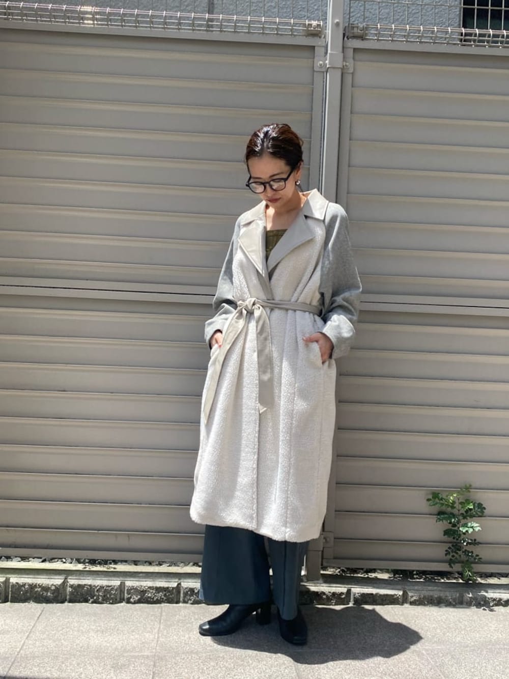 他にはないボア素材とヘリンボーン素材がドッキングされたMURUAらしいロングコート♡ゆるっと着ていただけるルーズ感も今年らしくオシャレに見えるポイント◎3色ありますが、私は1番着回しが効くアイボリーをチョイスしてみました。なのでインナーはあえてマスタード色のニットとブルーのパンツでカラー×カラーのコーディネートにし、前を閉めても開けても楽しめるスタイリングです♪人と被らないアウターをお洒落に着たいなぁと思っている方に是非オススメしたい一着です、、♡