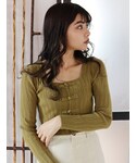 園部 涼子(MURUA)のニット/セーター「チャイナボタンリブニットトップス」を使ったコーディネート
