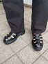 大人なモードカジュアルコーデ◎ 【tops】肩パットデザインがモード感を出してくれるオススメニットタンク◎162センチの私が着用してもルーズな丈感なので、インでもアウトでも使いやすく、こなれ感の出る万能アイテムです♡パンツと小物をブラックで纏めたので、鮮やかなブルーカラーをチョイスしてみたお気に入りコーデです! 【pants】ルーズなシルエットが今年らしいハイウエストのパンツは、どんな体型の方にもオススメ♪ボーイズライクですが、ウエストはキュッと細身でスッキリとした腰回りデザインなので、楽ちんながらもシルエットは綺麗に履いていただけます!162センチでSサイズ着用ですが、ペタンコで合わせてもちょうど良い丈感です。真っ黒のデニムは一年中履けるので一本持っていて間違いなし♡ 【shoes】今年大トレンドのグルカサンダルが遂にMURUAからも発売です!ボリュームのあるデザインで履くだけでコーディネートを今年っぽく見せてくれます♪ミニボトムに合わせる時は靴下合わせもオススメです◎どんなコーディネートにもハマりやすくこなれ感の出るサンダルなので、これは絶対にgetしたい一足です♡
