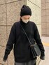 秋の通勤ブラックコーデ◎ 【knit】リアルバイのお気に入りニットを私服で着てきたのでご紹介♡クルーネックのニットなので私はインナーにシャツをレイヤードしましたが、シンプルに白のロンTをレイヤードしても可愛いです♡162センチでお尻がすっぽり隠れる長さの為、ゆるっとシンプルに着ていただけます!毛78%なのでとっても暖かく、真冬まで重宝していただけるニットです!