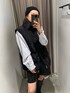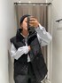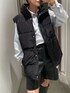 店頭コーデ 【vest】この時期1番使える中綿のダウンベスト。襟を立ててスタンドカラーにもなりますし、折っても着ていただけます◎ウエストが絞れる仕様なのでスタイルアップ効果も◎ 【shirt】リアルバイのシャツにダウンベストを重ねることでいつもとちょっと違った印象で着ていただけます!シワになりにくい素材なので、重ね着のインナーにも重宝しますよ♡ 【pants】こちらもリアルバイのレザーハーフパンツ!ダウンベストの黒と合わせてカジュアルに履きました。脚を出すことに抵抗がある方は、ロングブーツ合わせがおすすめです!