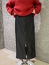 【リール着回しコーデ2詳細】リアルバイコーデ 【knit】全スタッフが持っている毎年定番のバルキーコットンオーバーニット今年はレッドをリアルバイしました♡ゆったりしたシルエットでパンツスカート問わずに合わせられるのが本当に万能!12月なのでインナーに、スカートの黒と色を合わせてタートルレイヤードで着てみました✌︎ 【skirt】スカートもほとんどのスタッフがリアルバイしていた今季1番人気のスカートです✌︎ZIPの位置が前でも横でも後ろでも履けるマルチウェイですが、私はフロントジップにするのが好きです。162センチでMサイズ着用のこの長さが好みです♡