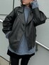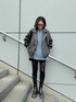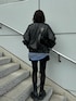 【jacket】 オーバーサイズの為冬の分厚いニットの上からでも余裕で羽織れるサイズ感で、フェイクレザーなので風も通しにくく今の時期から長く着用していただけます♡ ヴィンテージ加工のされたブラックカラーなので、冬でも重たくなりすぎずどんなコーディネートにもハマる万能アイテムです!