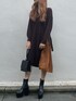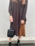 大人っぽいミディ丈のプリーツワンピースです◎ラフに着れてサイドにベルトデザインとプリーツのドッキングになってるので1枚で着てデザインが映えるワンピースです❤︎ シューズはEVRIRで1番人気の厚底ブーツを合わせました◎